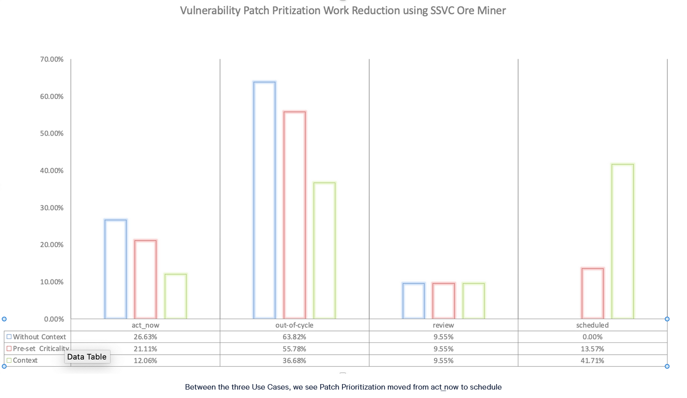SSVC Ore Miner automates vulnerability remediation prioritization end-to-end leverage data from Asset Management, Environment Classification, Cloud Configuration Management, Cloud Risk, Vulnerability Identification, CVSS, and Vulnerability Threat Intelligence into a single end-to-end automated decision tree.